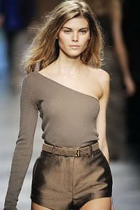 Prada 不是唯一把短裤带入下一季的设计师。比如纽约新锐设计师Alexander Wang,他所设计的褐色皮革短裤刚柔相济,正面的系带妖娆性感,侧面却加上了颇为强势的银色拉链。Balmain 的短裤看起来像是剪短的黑色牛仔裤,并经过了水洗处理。毫无疑问这些短裤都将价格不菲——尽管面料不多——而且肯定刚上货架就会被一抢而空。D&G 的磨砂山羊皮短裤,颜色让人想起美国西部的沙漠,裤腿还镶上了俏皮的花边。穿上这种短裤走在大街上,再配一件牛仔风格的束身胸衣和锥跟牛仔靴,一定会造成交通瘫痪,当然这也正是设计师的目的。Marc Jacobs 的短裤借鉴了1950年代风格的打底内裤 ;Stella McCartney 用棕色山东绸制作短裤 ,据说这种面料会在下一季风行 。Yves Saint Laurent 的短裤以黑色紧身皮裤的面貌出现,并在膝盖处裂开;Hermes的黑色牛仔短裤很衬体形,长度则控制在膝盖上下。