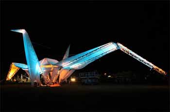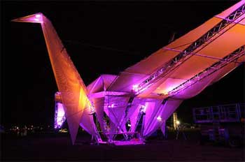 这里创意酷谈的可不是情啊爱啊之类的,要说的是洛杉矶设计师Crimson Collective给我们带来的堪称世界上最大的LED发光纸鹤,这是在当地举行的Coachella音乐节上,采用的是纸鹤造型,加上LED灯,在夜间照射出炫彩的灯光非常的漂亮。