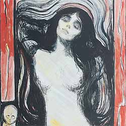 邦瀚斯拍卖的这件作品背后还有一段悲情史:蒙克作品中这幅袒露双乳的圣母的模特是他的情人达妮·尤尔(Dagny Juel),后来她被她的另一位情人枪杀。