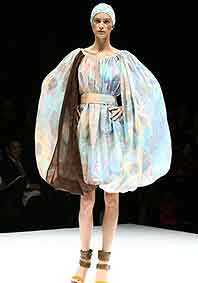 这个于2001年由夫妻档设计师武内朝(Akira Takeuchi)和中西妙佳(Takuya Nakanishi)所创立的品牌,虽然出道才短短几年,却因多变的风格成为了近年来日本年轻市场最重要的品牌之一。虽然品牌名字很具戏剧化,而今季的新款却选择了较为中庸的风格,略显保守,但实用度颇高。即将推出的春秋系列名为:“伪装”(Camouflage)。这一系列中的多款罩衣风格柔美,衣料垂坠感很强,丝毫没有“军国主义”的硬朗气息,让人不禁联想到新印象主义大师Georges Seurat的绘画。最后压轴的一系列缀有细碎零星花纹的薄纱分层长裙更是令人过目不忘。
