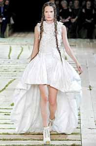 博彩公司倾向于Bruce Oldfield, 这是戴安娜王妃生前最喜爱的设计师之一。时尚主编们和英国第一夫人Samantha Cameron热爱的设计师Erdem Moralioglu也是热门人选,想象一下他2011春夏系列白色蕾丝和奶油色四段的裙装变为加长版会是多么的高雅圣洁! 或许凯特也效仿奥巴马夫人支持一下新锐设计师,比如被誉为“奥巴马夫人御用设计师”的Jason Wu,其最近推出的婚纱系列采用硬朗的线条以平衡蝴蝶结、花朵装饰堆叠的女性化细节,跳脱了传统婚纱设计的模式。或者遵循凯特以往的风格,继续沿用她平日最热衷的 Issa品牌的设计师Daniella Issa Helayel? 也或者她会像只穿法国品牌的法国第一夫人布吕尼学习,选择最具代表性的本土设计如 Burberry、Stella McCartney 或者Vivienne Westwood? 也有人相信John Galliano的斜裁礼服最能圆“灰姑娘”之梦。最后入围的还有Alexander Mcqueen,其现任设计师 Sarah Burton在伦敦市中心有定制级别的工作室,可以制作无以伦比的婚纱。她2010秋冬系列几款白色的礼服都可以改良为婚纱,足以改写皇室时尚的历史。