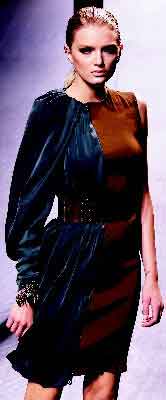 好莱坞女星蜜雪儿莫娜汉日前也穿上 LANVIN 2011年早春新装,同样是层层迭迭的效果,设计总监 Alber Elbaz巧妙利用小抓绉,呈现出小礼服的俏丽,下摆刻意外散效果,也让蜜雪儿穿出可爱韵味。