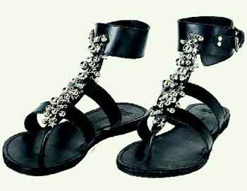 今年春夏最受瞩目的凉鞋,首推LANVIN的罗马式凉鞋,充满金属、皮革间的有趣撞击,据指称,LANVIN设计总监阿尔巴仕在春夏秀开始前,看到名模们穿著高跟鞋,要面临脚痛、摔倒等危机,因此全面要求模特儿改穿平底凉鞋,利用简单绑带与金属装饰,反而打造出女战士的品味。