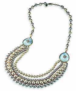 纽约珠宝设计师 Alexis Bittar 新品也可见到珍珠元素 ,ELEMENTS系列首度推出玫瑰金材质饰品,结合KESHI珍珠、粉红石英与粉紫水晶;另如MISS HAVISHAM系列,将珍珠搭配熔融金属,LUCITE系列则将细致打造的花朵与珍珠项链结合。