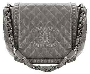CHANEL 2.55包的放大版本,灰色光泽感牛皮菱格纹口盖包。