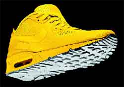 而此无接缝的设计也让重量大幅减轻,单只鞋约355公克,约5颗鸡蛋的重量,而网层布面结构的 「 X-ray 」 透明化,也让消费者可直接看到网层布面变化状况,NIKE 也将此技术融入 AIR FORCE 1、AIR MAX 1及AIR MAX 90的招牌鞋型。