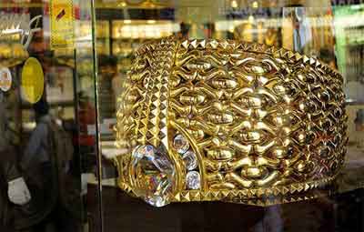 这里是迪拜的黄金市场 ,相信所有的女人到了这里都会心跳加速 。绵延几条街的各种黄金饰品店,橱窗里挂着各种项链 ,戒指 ,耳环等,让人眼花缭乱,几乎全世界的各种款式你都能在这里看到。