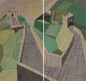 TOD'S的Signature新包发表会上,展出艺术家Marcello的画作,图为中国长城。