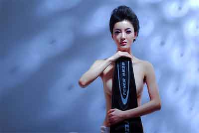 这次李颖芝在照片中化身羽球宝贝,身上的高衩泳装配上修长双腿与纤细腰身,让著名美胸与翘臀更为之突出,大秀传说中凹凸有致的玲珑曲线。不只这样,李颖芝甚至大胆半裸上阵,只拿羽球拍套遮住丰满上围,让网友大呼:「好火辣!」、「好凶的胸器!」,还有网友大赞:「这身材搭配脸蛋可说是极品啊!」