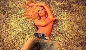 只见甘蒂丝史汪柏时而用双手护胸,时而用金箔遮胸,举手投足风情万种。试图解开牛仔裤头,留下无限想像空间。她没有抢眼上围,但凭着火辣曲线和一双美腿,轻松立足模特儿界。
