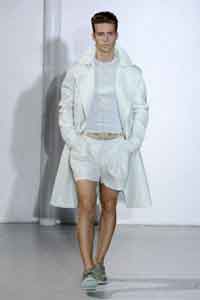 Dior Homme与Hermes不约而同以海军蓝刻画俐落男性风格,Dior Homme春夏男装延伸秋冬军装特色,大肆挥洒海军蓝带来清新俐落魅力,Kris van Assche 除了保留Dior Homme极简特色,还加入阳刚线条,以海军蓝外套为中心,大玩变装游戏,从长袖到无袖、双排扣至单排扣,或是以透纱材质与抽绳设计,带来清凉的拼贴趣味。