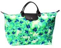 MARY KATRANTZOU女装与其和Longchamp联名的包款各自以一片式数位印花布满服装与包款,透过深浅色调来营造视觉上的3D效果,较于以往传统平面的印花,多了眼花撩乱的感觉。