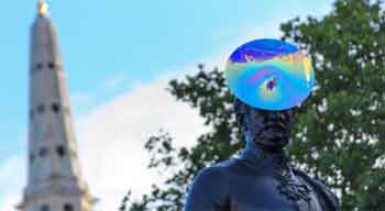为第一威灵顿公爵设计了一顶充满现代感的三角帽,在上面别出心裁地饰有红色、白色和蓝色羽毛,并且以波浪的造型重现了英国国旗的造型。在特拉法加广场,亨利 · 哈弗洛克爵士(Sir Henry Havelock)头顶菲利普·崔西(Philip Treacy)为其设计的彩虹色大圆帽,与Lady Gaga在《MTV欧洲音乐大典2011》 上面佩戴的帽子有异曲同工之妙。斯蒂芬·琼斯(Stephen Jones)为国王乔治四世和他的马精心制作了一顶概念化的王冠。富兰克林·罗斯福(Franklin Roosevelt)的帽子则非常滑稽,是斯帕姆午餐肉的罐子 ,顶上是博伊德(John Boyd)装饰的羽毛,温斯顿·丘吉尔的雕塑在罗斯福雕塑的旁边,头戴赫伯·约翰逊(Herbert Johnson)出品的圆形礼帽。