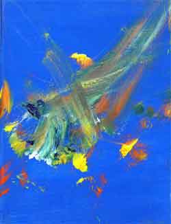 嘴上含着画笔,头上戴着贝雷帽,这只天赋异禀的驴子马上就有了艺术家气质,只要在它前面架上一张空白的画板,它就能开始“挥嘴作画”,通常,它完成一张画作仅需要十分钟。从画面看,它显然很喜欢靓丽的色彩,当然罗,抽象是它最中意的绘画风格,这一点从来没有发生改变。