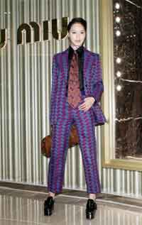 miu miu 今年秋冬走男装风格,多位女星都穿裤装现身,但搭配的高跟鞋前高、后跟更高,接近20公分,女星们走路都小心翼翼,仿佛太后出巡。林熙蕾有经纪人在一旁搀扶,气质女星张钧宁也很小心,但说「蛮好穿的」。